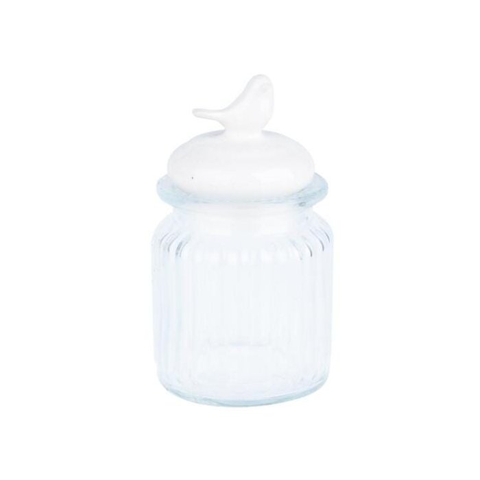 POTICHE ORNAMENTAL VIDRO C/ TAMPA BIRD ON TOP BRANCO PEQ 8 X 8 X 14 CM