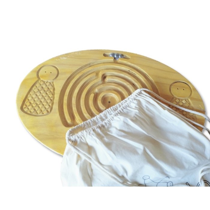 Itens inclusos: 1 prancha de equilíbrio com labirinto, 3 esferas (soltas) de aço de 15 mm e 1 saco de algodão (tipo mochila) para guardar e transportar.