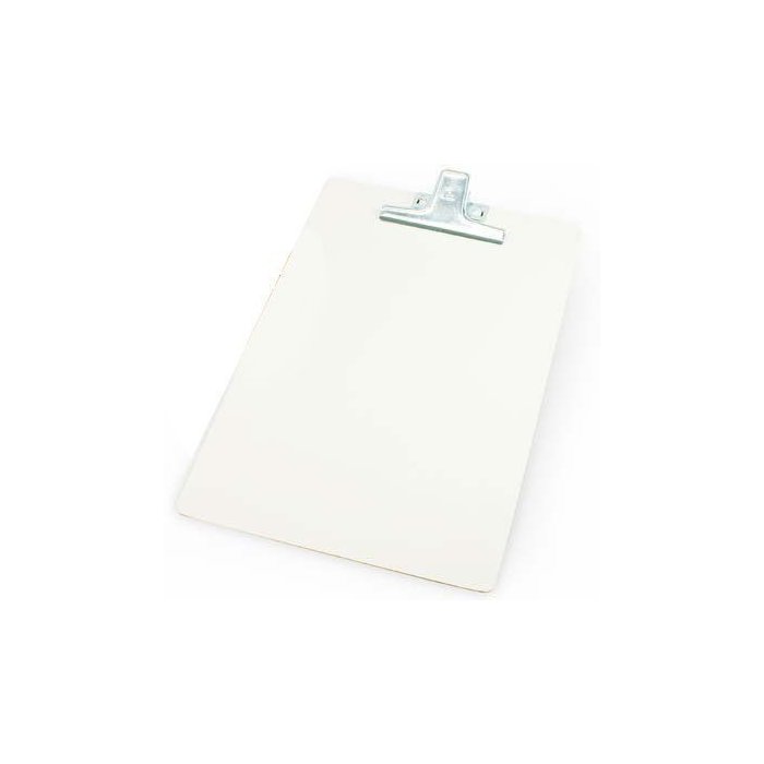 Prancheta em MDF com superfície branca, possui um ótimo acabamento dos dois lados, com os cantos arredondados e prendedor metálico Prata