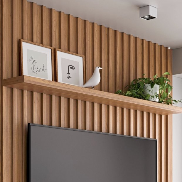Prateleira em mdf 180cm , acabamento pintura UV cor freijó madeirado fosco, este produto deve ser utilizado em um dos nossos painéis ripados referencia PA 72 - PA 73 - PA74 ou PA75, excelentes para decoração de ambientes