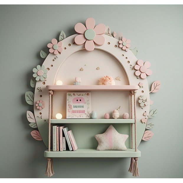 ✨ Design Encantador: Com detalhes em formato de balanço e delicadas flores, esta prateleira traz um ar de conto de fadas para o espaço.