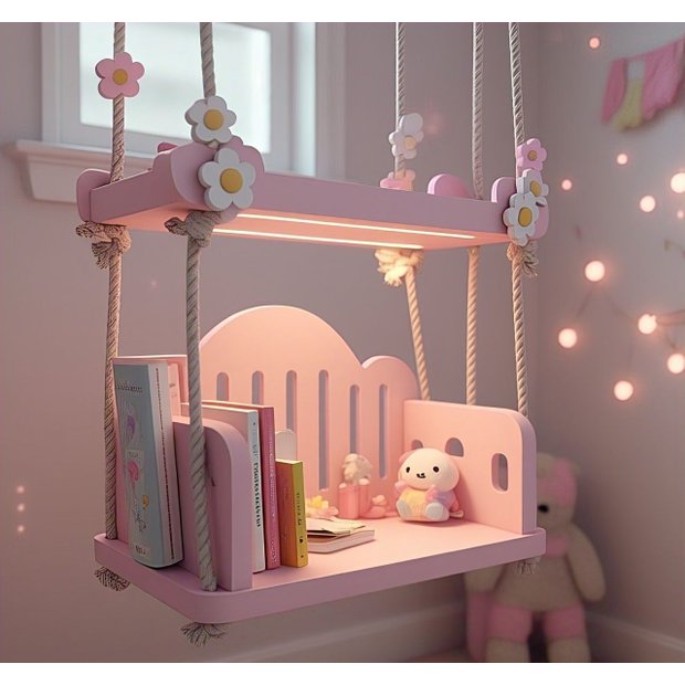 ✨ Design Encantador: Com detalhes em formato de balanço e delicadas flores, esta prateleira traz um ar de conto de fadas para o espaço.