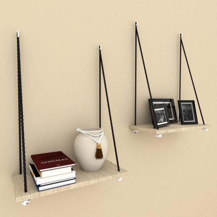 Prateleira com Cordas Suspensa Estante Parede Nicho Amadeirado Cozinha Escritorio Sala Quarto