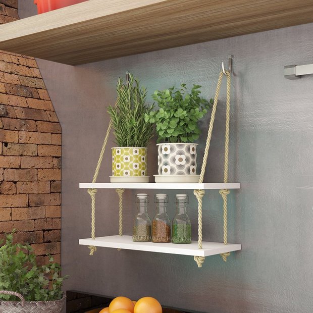Seu cantinho vai ficar ainda mais moderno com a prateleira com corda sisal 2 prateleiras 2 ganchos .