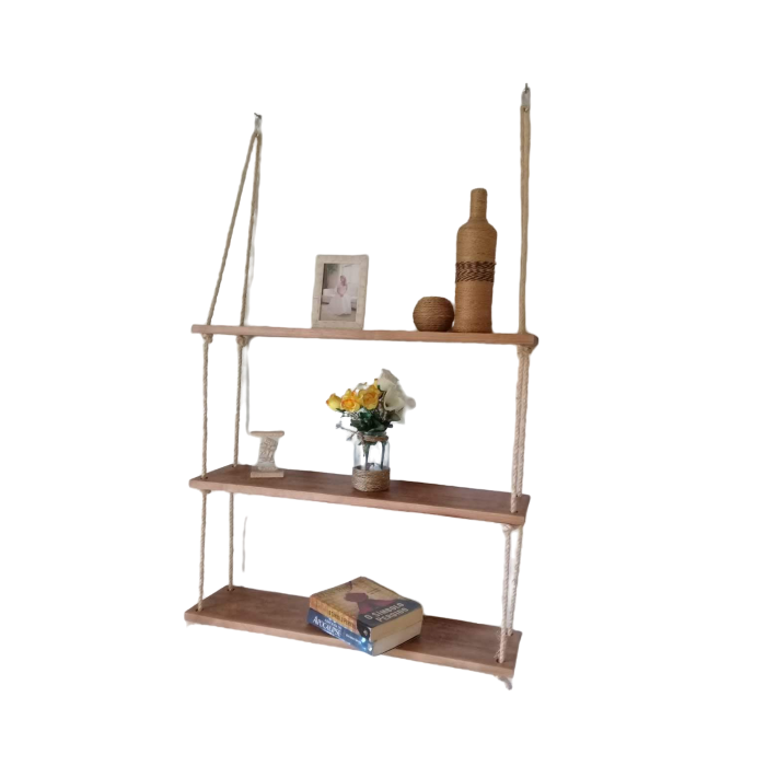 Prateleira de madeira e corda de Sisal