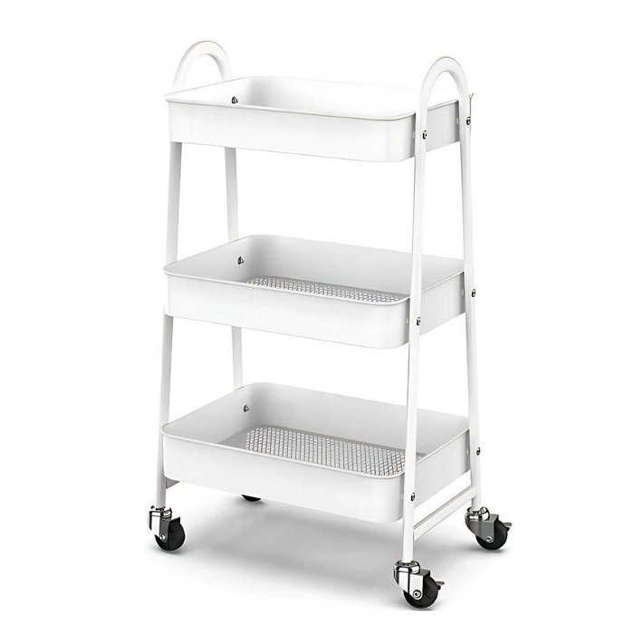 Prateleira de Metal Multiuso 3 Andares com Rodinhas - Branco