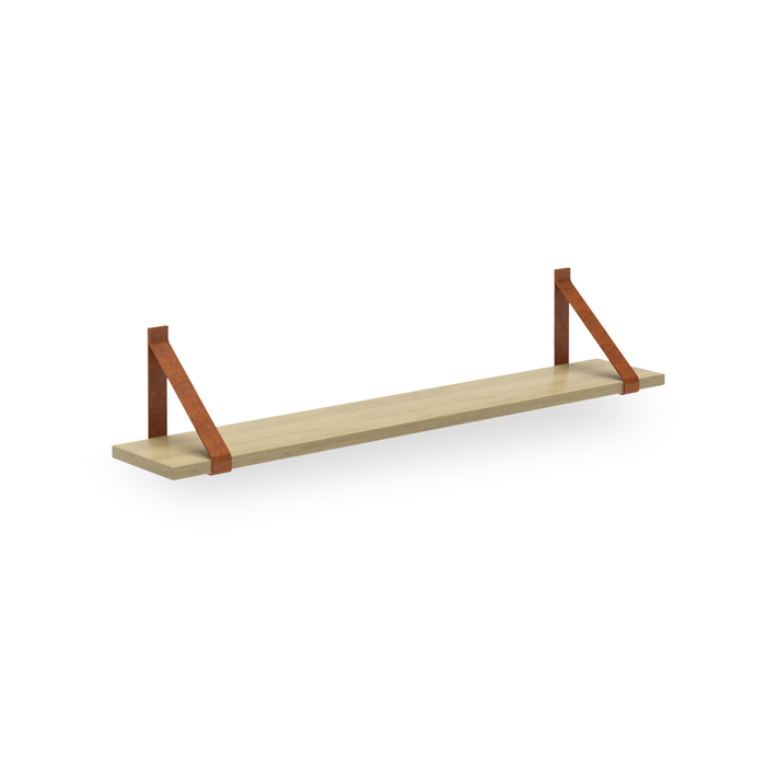 Prateleira de Parede 90 Cm em Mdf com Alça de Couro Sintético Cor Carvalho