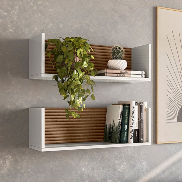 O(a) Prateleira Decorativa Demadero Off White Cristal/Ripado Madeira - Nicioli é produzido em MDP na escala de brilho Semi-Brilho, e possui um grau de dificuldade de montagem: Médio.
