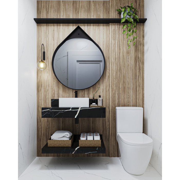 Prateleira em Porcelanato para Banheiro 80cm PRETO Preto