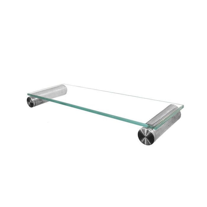 - Prateleira: Corpo em Vidro e Base tubular em AÇO INOX - (Altura 4 cm x Largura 30 cm x Profundidade 10 cm)