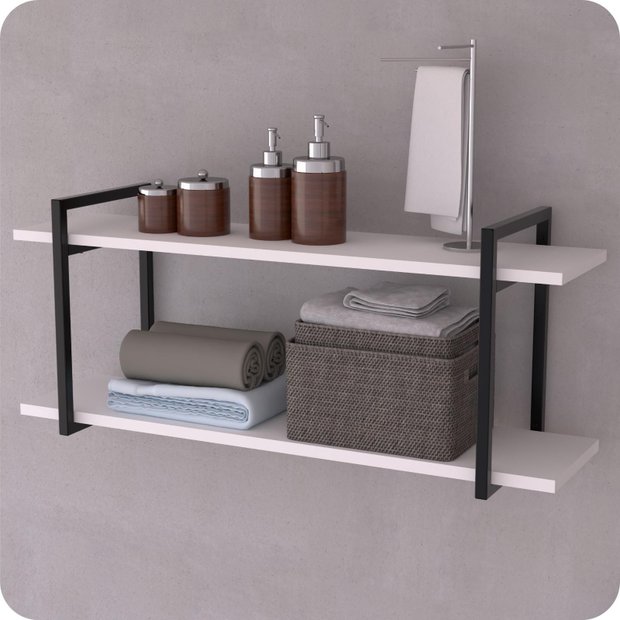 Material: Aço e MDP.Dimensões do tubo da estrutura: Tubo quadrado 20x20 mm.Acabamento da Estrutura de aço: PretoAcabamento do MDP: Branco MEDIDAS DO NICHOComprimento: 100cmAltura: 41cmProfundidade: 29cmDistância entre as prateleiras: 30cm MEDIDAS DA PLACA DE MDPComprimento: 100cmEspessura: 1.5cmProfundidade: 24.5cm