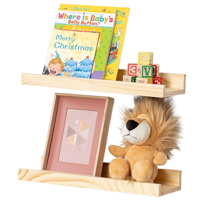 Prateleiras flutuantes com amplo espaço de armazenamento para quarto de bebê: Instale estas prateleiras flutuantes na parede do quarto do seu bebê. As crianças podem guardar livros, brinquedos, bichinhos de pelúcia e jogos nas prateleiras de parede. O tamanho desta prateleira de parede para quarto de bebê é de 40,6 x 12,7 x 5 cm). Pacote com 2 unidades.