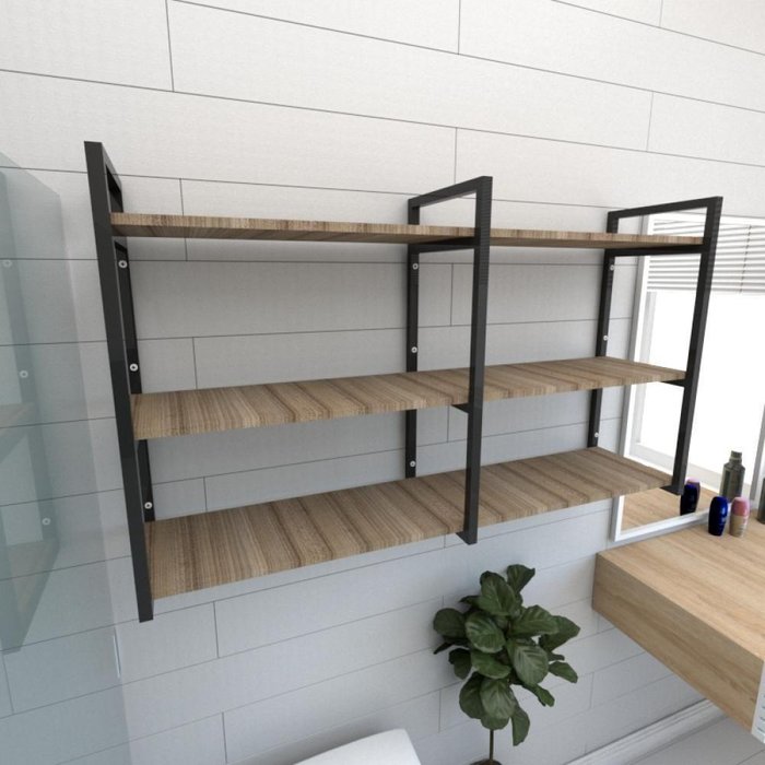 Prateleira Industrial Banheiro Aço Cor Preto Prateleiras 30cm Cor Amadeirado Escuro Mod Ind11aeb