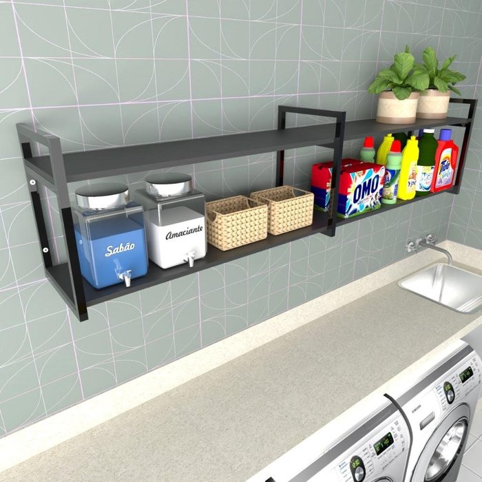 Prateleira Industrial Lavanderia Preto Area de Serviço Nicho Multi Uso Simples Estante Mdf