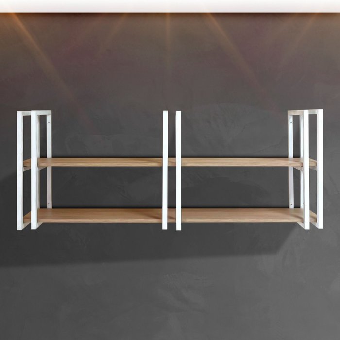 Prateleira Industrial Moderna e Elegante Prática com Ferro e Madeira Haste Branca e Mdf Amadeirado Haste Branca e MDF Amadeirado.