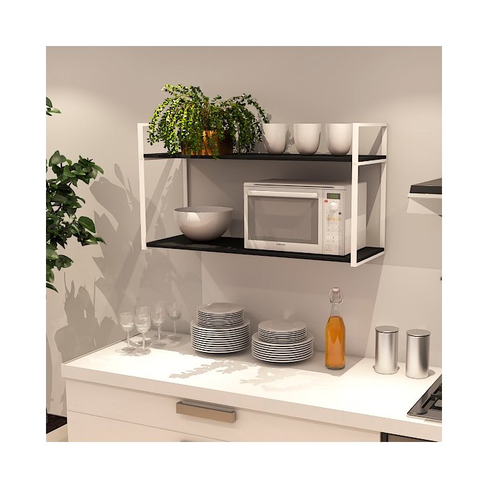 Ver imagem 1 de Prateleira Industrial Parede ou Suspensa Branca Aço e Madeira 50x40x90cm - Preto