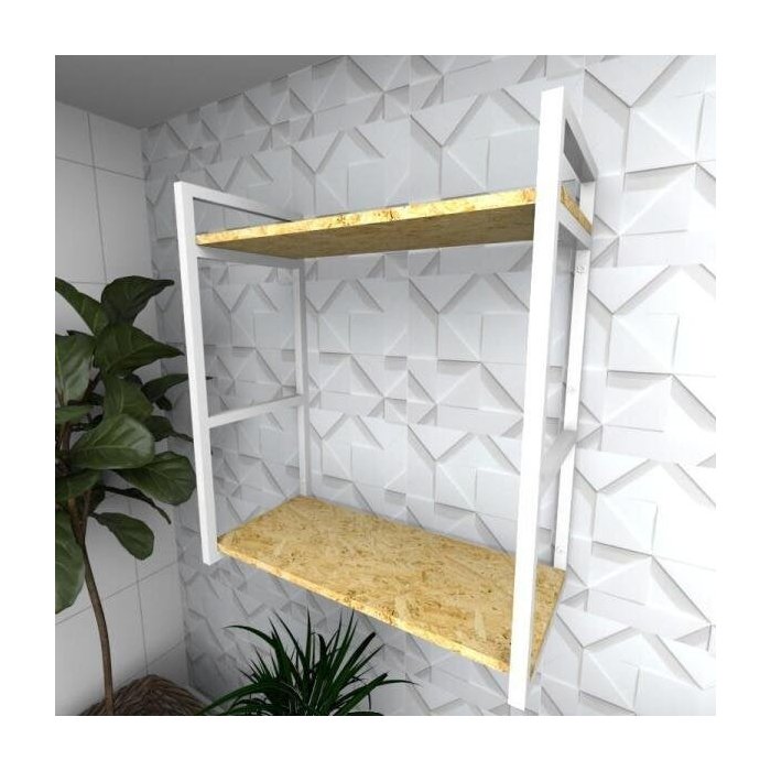 Prateleira estilo industrial para Sala aço cor branco prateleiras 30 cm cor OSB modelo indb10bsl . Medidas, Profundidade: 30 cm Altura: 68 cm . Profundidade Livre das badnejas: 25,80 cm. MDF utlizado de alta resistencia 15mm. Aço utilizado 20x20 0,90 com pintura eletrostatica epoxi, anti ferrugem. Incluso parafusos e buchas. Suporta até 20 kg por nivel