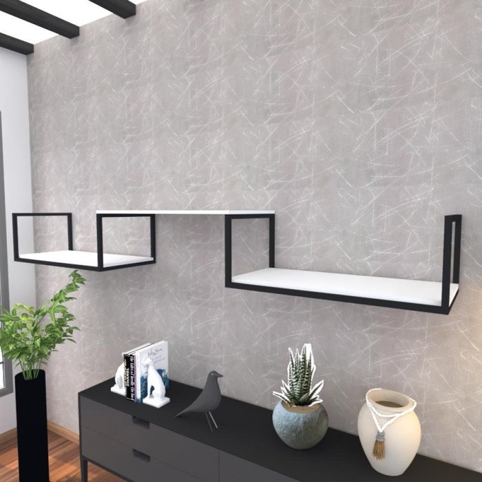 Prateleira Industrial Suspensa Estante Parede Nicho Branca Ferro e Madeira Suporte Pratileira Branco