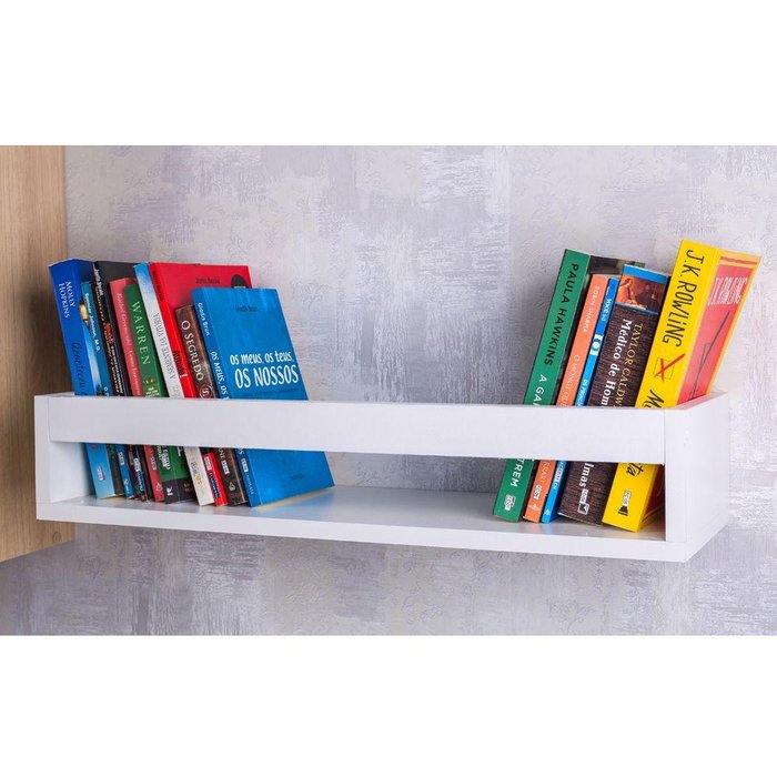 Prateleira para livros com 60cm largura x 20cm profundidade x 12cm altura. Permite organizar e dispor os livros de forma prática e criativa. Acompanha suportes para instalação na parede