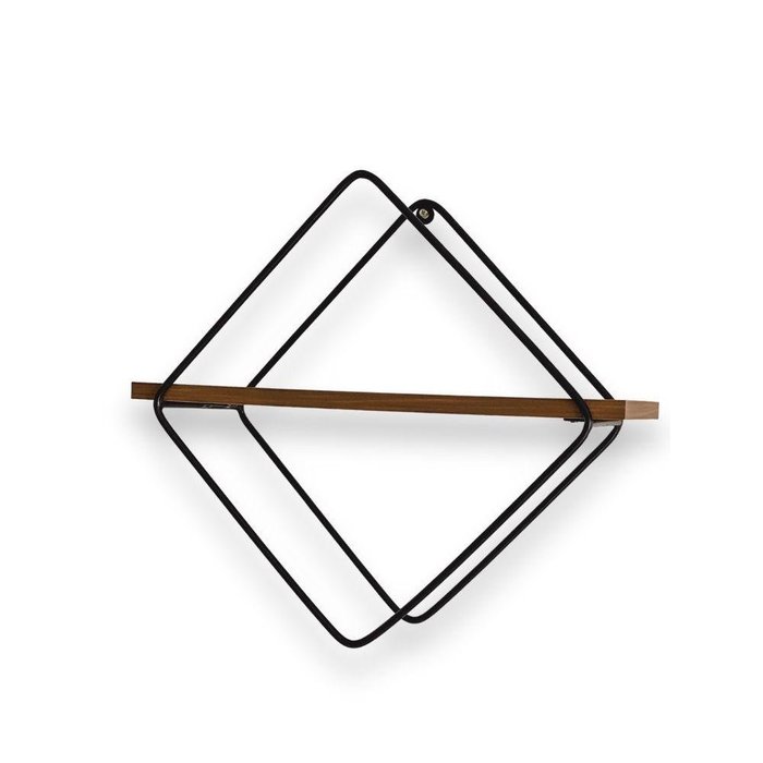 Prateleira Losango 1 Nível Metal Preto Mdf Amadeirado