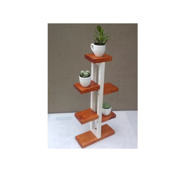 Prateleira Mini Suculentas ou Cactos em Madeira de Pinus ( Altura 57cm) Modelo Primavera mogno e branco