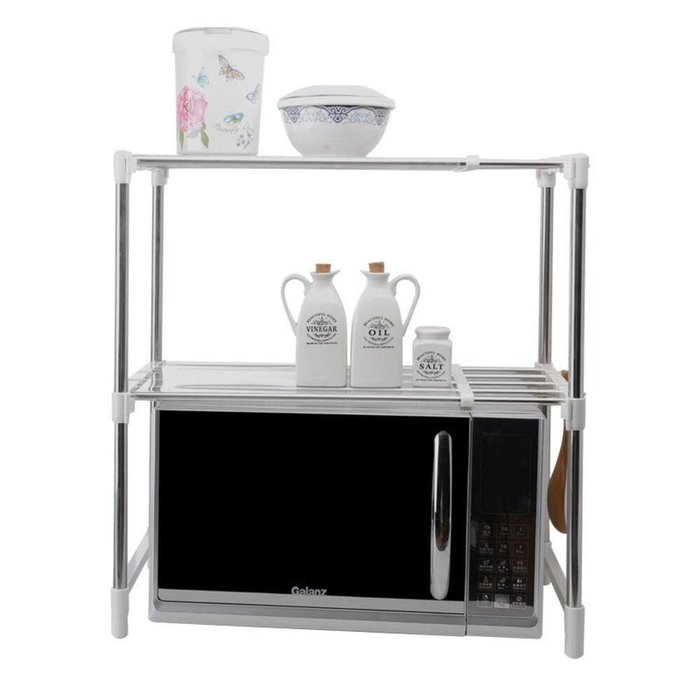 A prateleira de armazenamento com estrutura telescópica de dupla camada é perfeita para maximizar o espaço em sua cozinha, mantendo tudo ao seu alcance e organizado de forma prática.
