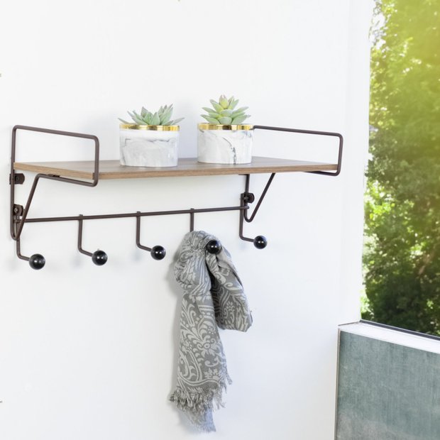 Prateleira Multiuso com Ganchos Aço Corten/Preto