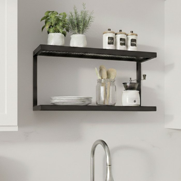 Prateleira Nicho Organizador Duplo em Metal com Telinha Utensílios de Cozinha Preto