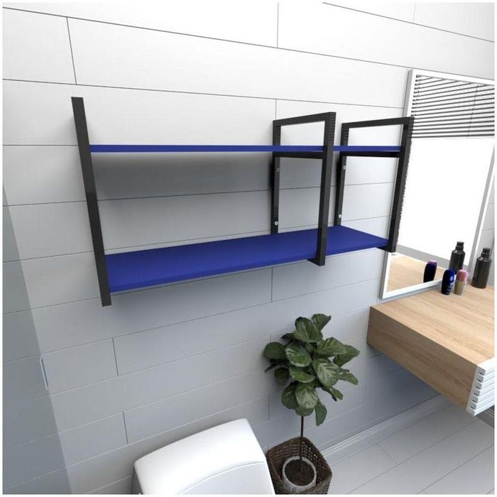 Prateleira Para Banheiro Aço Preto Azul Escuro Modelo Azul