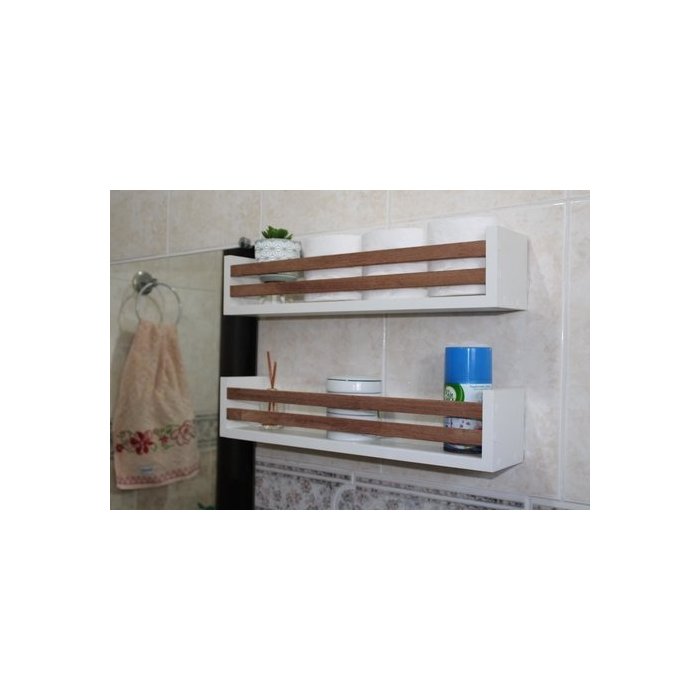Prateleira para Banheiro Mdf Branco 50x10 Dulce Cedrinho Branco e madeira natural
