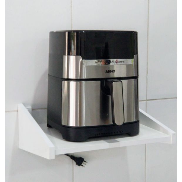 Planejada para Air fryer, mas serve também para outros eletrodomésticos, como panela elétrica, bebedouro, purificador e alguns ventiladores. Também pode ser usado como mesa de cabeceira entre outras finalidades. É uma prateleira multiuso com designer diferenciado. Sua praticidade vai além de uma simples prateleira. A começar pelo fato de que, “não necessita montagem”, chega pronta para a instalação. Instalamos fixador metálico reforçado e Galvanizado e enviamos bucha e parafuso para a instalação.