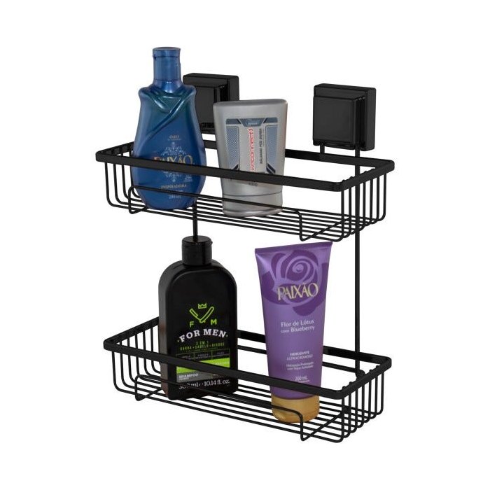 Deixe seu banheiro de cara nova com o acessório perfeito para um ambiente sofisticado e moderno. Em acabamento Preto Fosco luxuoso, este Porta Shampoo com dois andares é a peça ideal para compor uma decoração que facilitará o seu dia a dia. Novidade exclusiva no mercado de Casa e Decoração, mantém seus utensílios de higiene pessoal sempre em mãos para uma hora do banho muito mais prática, tornando a parede do seu banheiro incrivelmente requintada contando com tecnologia de fixação rápida por ventosa que evita bagunça e sujeira na hora da instalação. Sua superfície em material resistente de aço piatina traz beleza e praticidade para um lar muito mais decorado e harmonioso!
