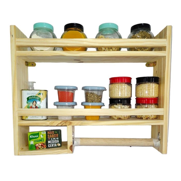 | Modelo | Prateleira porta temperos de madeira, condimentos papel |
