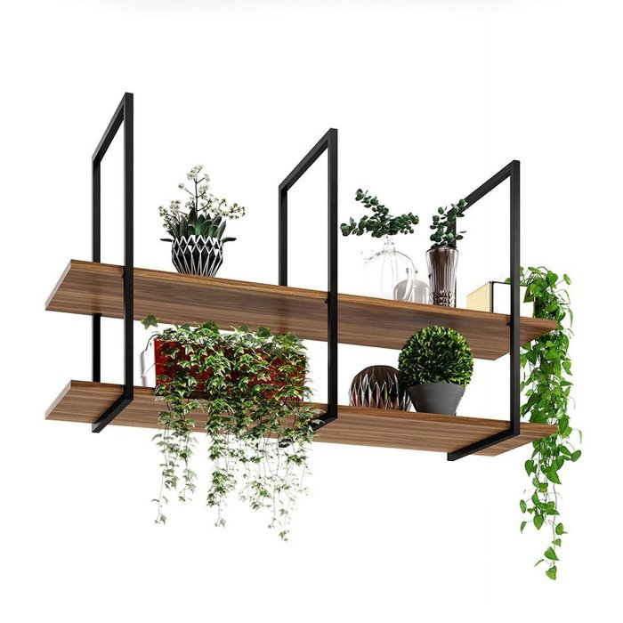 Prateleira Suspensa 2 Tampos com 200cm Freijó/Preto