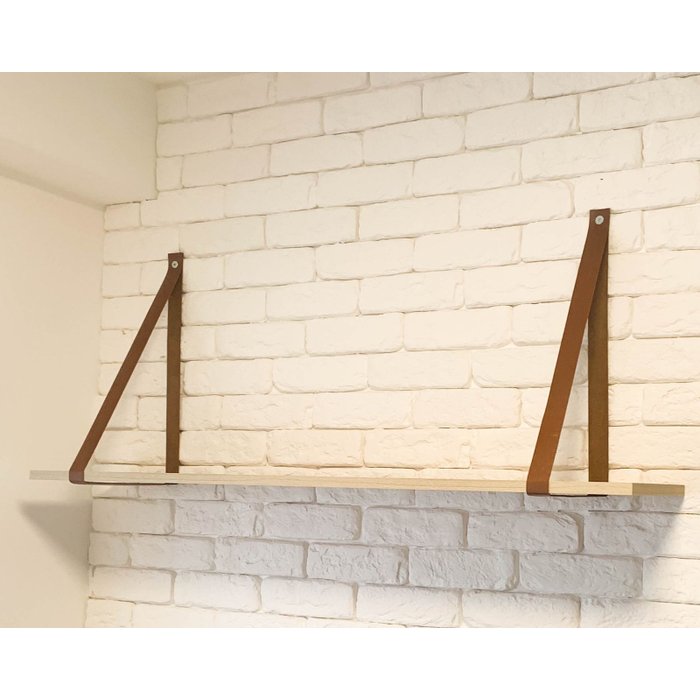 Prateleira Suspensa Verena 100cm – Mdf Carvalho com Alça de Couro Carvalho