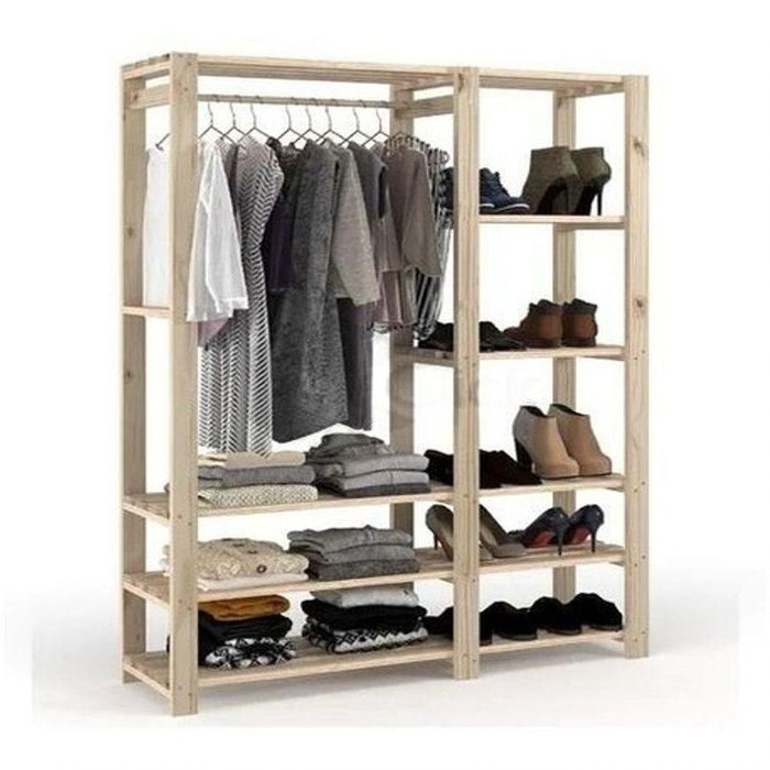 Estante arara com prateleiras e estrutura em madeira maciça de Pinus.DIMENSÕES :