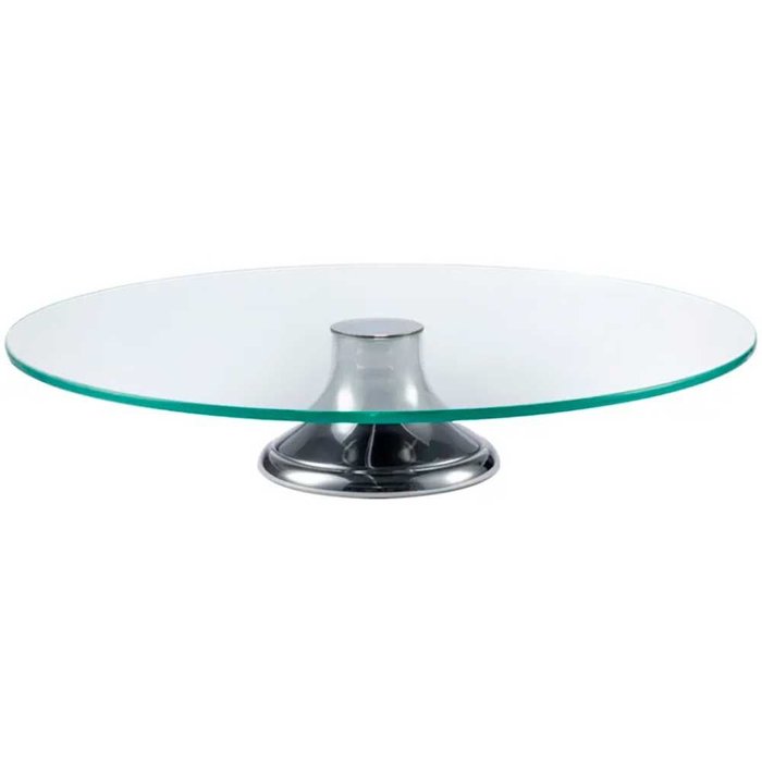 Prato de Bolo de Vidro Transparente c/Pé Aço Inox 40cm Wolff