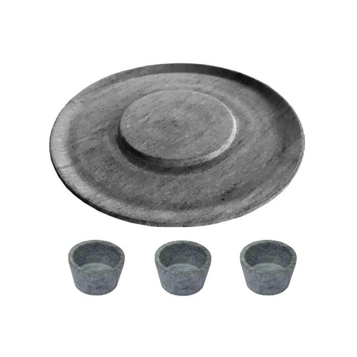 Prato de Hambúrguer Porções 26cm e 3 Molheiras Pedra Sabão Única