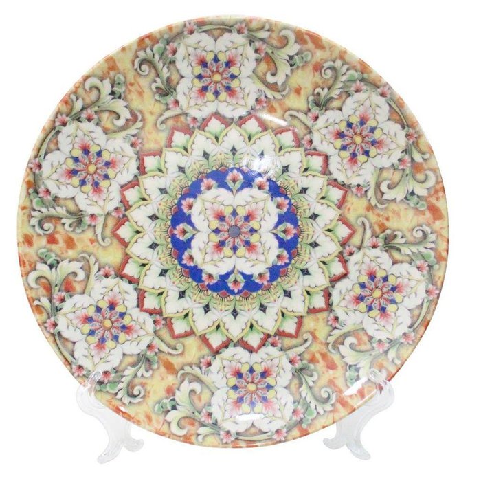 Prato Decorativo Cerâmica Castello Com Suporte Transparente Para Mesa 19cm -