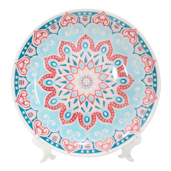 Prato Decorativo Cerâmica Cosmic Com Suporte Transparente Para Mesa 26cm