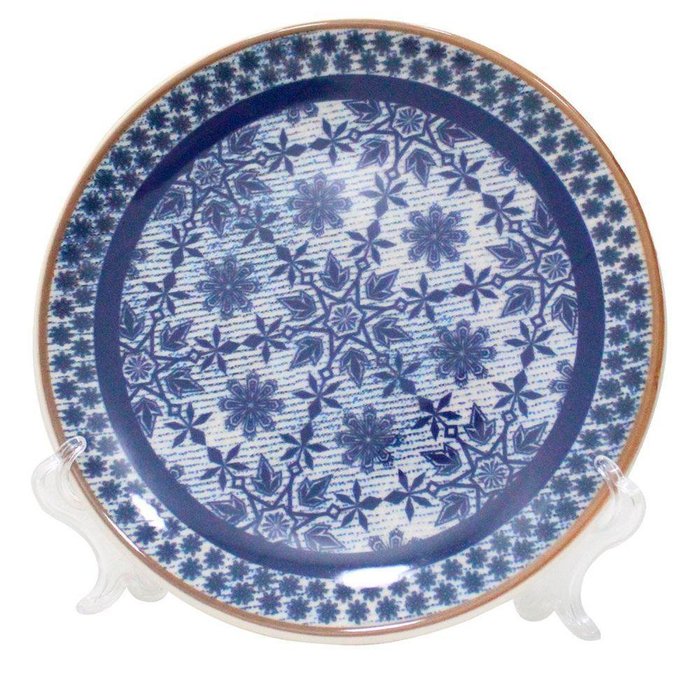Prato Decorativo Cerâmica Jeans Com Suporte Transparente Para Mesa 19cm -