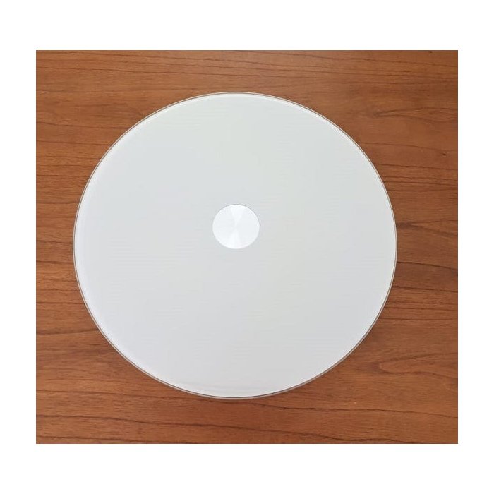 Prato giratório para centro de mesa estilo bailarina em vidro temperado com película branca.