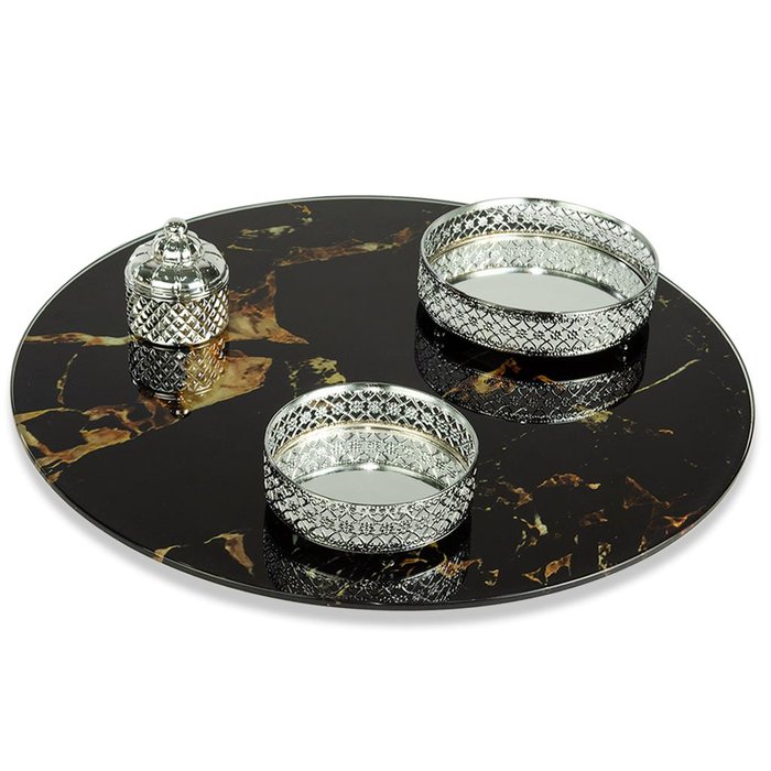 Prato Giratório Serigrafado Marmorizado Preto 60 X 8mm