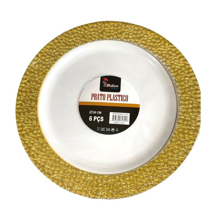 Prato Luxo Natal Réveillon Plástico Reutilizável 26cm-12un