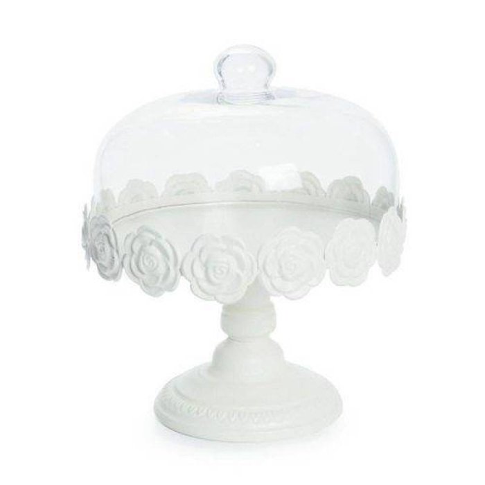 Prato Para Bolo Cake Bailarina Com Cúpula Branco Grande Borda Rosas - 30 X 25 Cm Feito De Metal, Vidro É O Produto Perfeito Para Deixar Seu Ambiente Mais Lindo! :)
