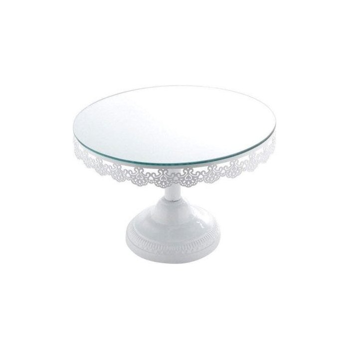 Prato para Bolo Cinzelado de Ferro Fundido Esmaltado White com Base 30cm Rojemac
