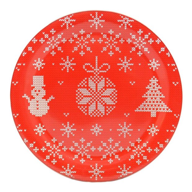 Peças inspiradas em tecido de trico que traz a magia do Natal de abraços calorosos e memórias duradouras. O trico remete ao trabalho manual que pode trazer esta magia de amor, carinho e ao redor da mesa para contemplar esta data tão linda ao lado de quem tanto amamos. Proporcione este momento mágico.Prato bolo de vidro, vermelho, estampada. Pode ser levada ao microondas, lava louça. Não recomedado levar ao forno.Ø 29,5 x A. 2