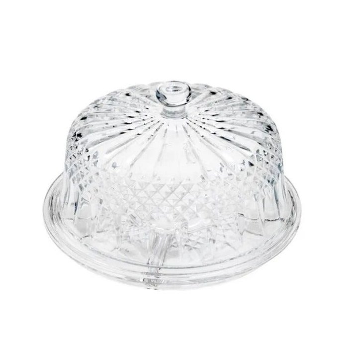 O prato para bolo Diamante da Lyor é a peça que faltava. Ela é inteira transparente feita de cristal, e sua cúpula trás um design todo lapidado, bem elegante e refinado, além de deixar seu bolo protegido, completa a decoração da sua mesa posta.