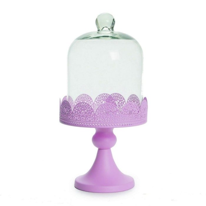 Prato Para Cupcake/Doces Cake Com Cúpula Rosa Borda Rendada - 29 x 15 Cm feito de Metal, Vidro é o produto perfeito para deixar seu ambiente mais lindo! :)