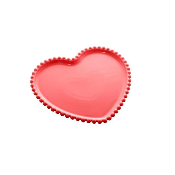 Prato Porcelana Coração Beads Vermelho Bon Gourmet 20 Cm